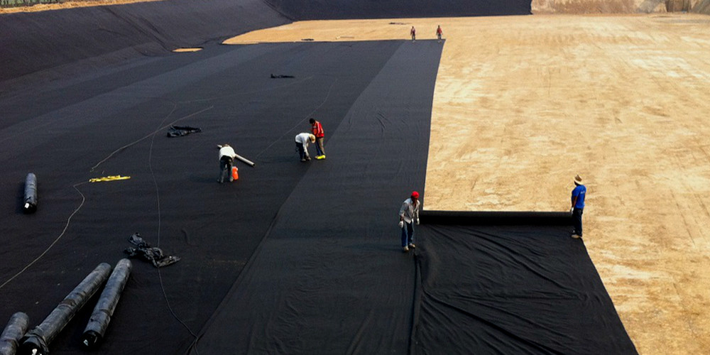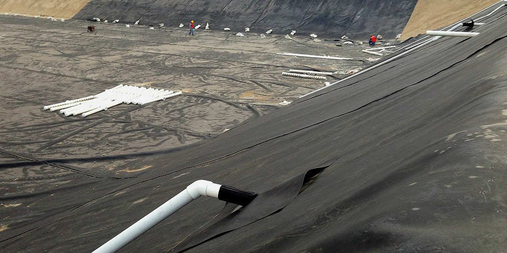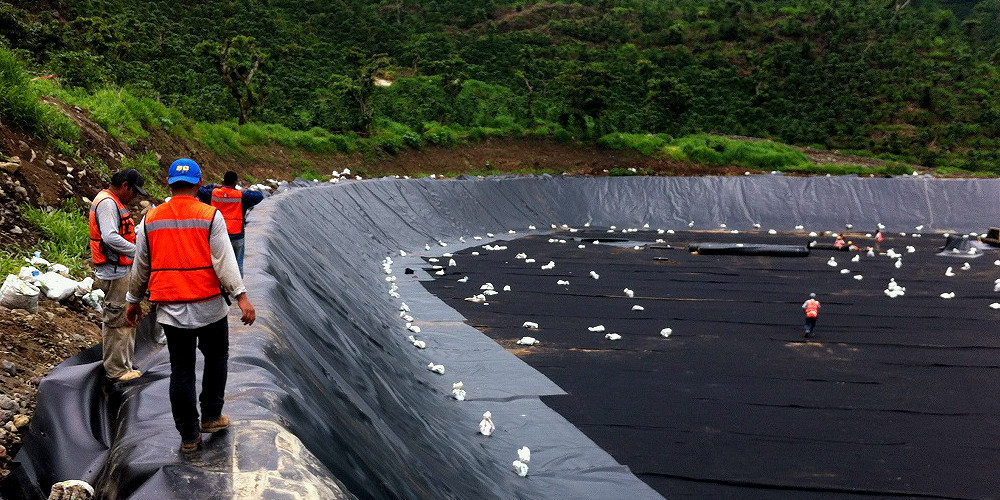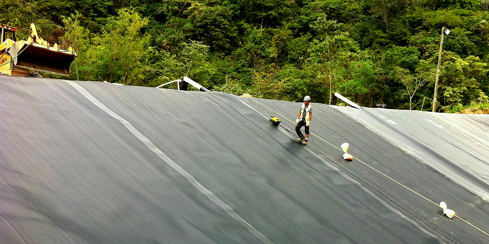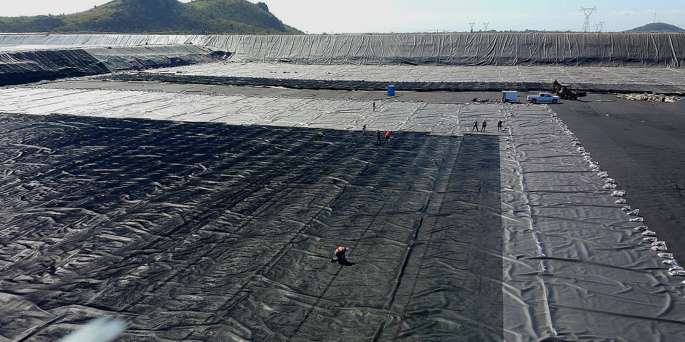 Desechos. Instalación de geomembrana hdpe celda de relleno sanitario.
