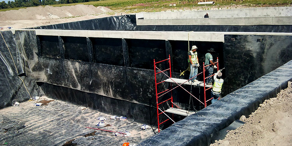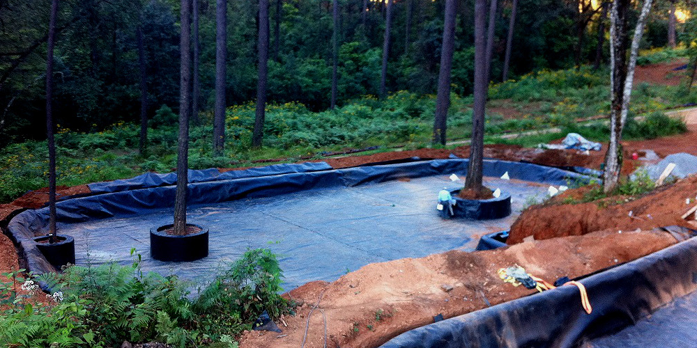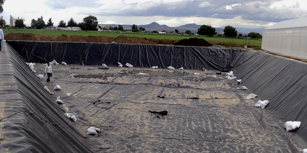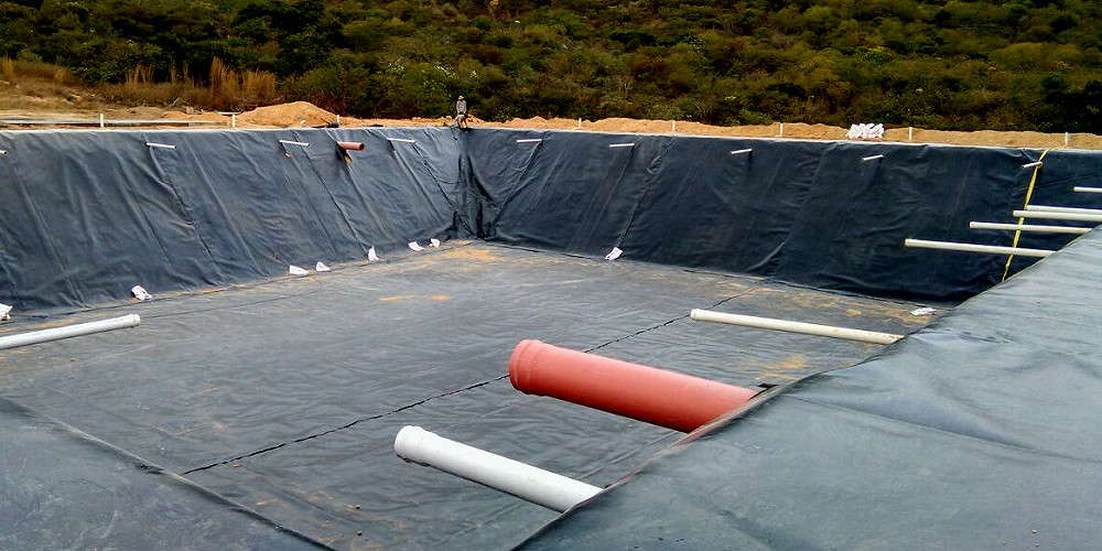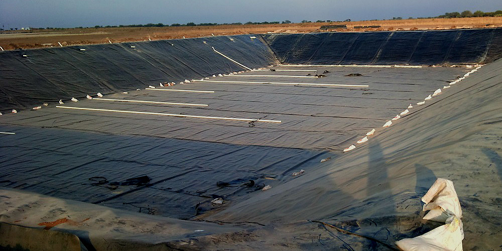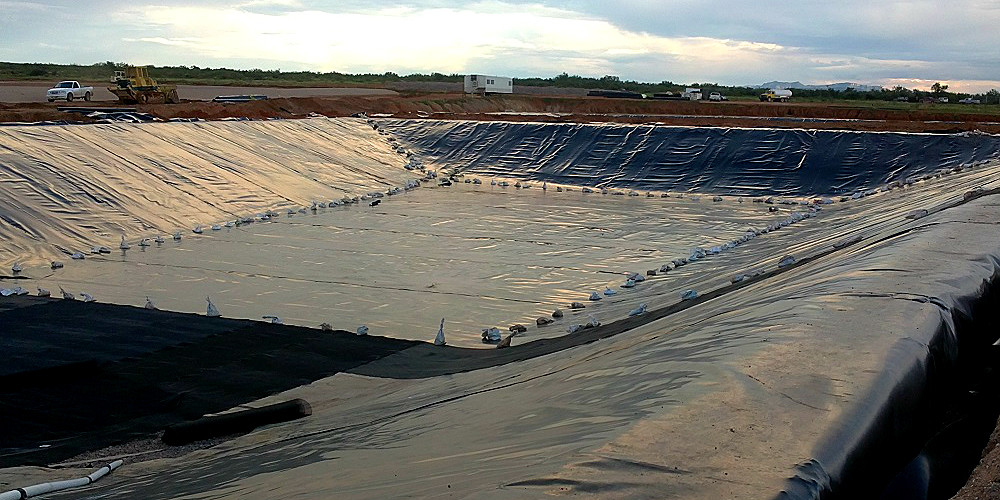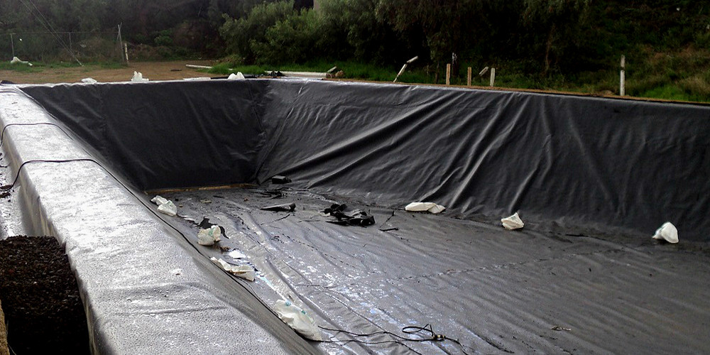 Mineria. Pileta de Tormentas, instalación de geomembrana.