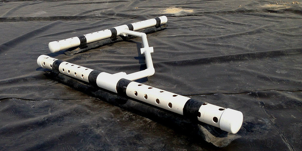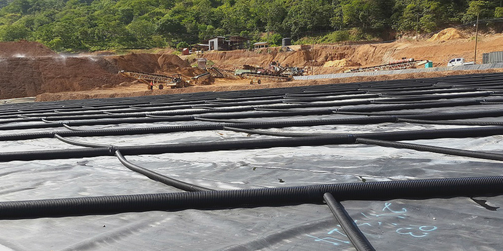 Minería. Patios de lixiviación con tubería para recolección de solución.