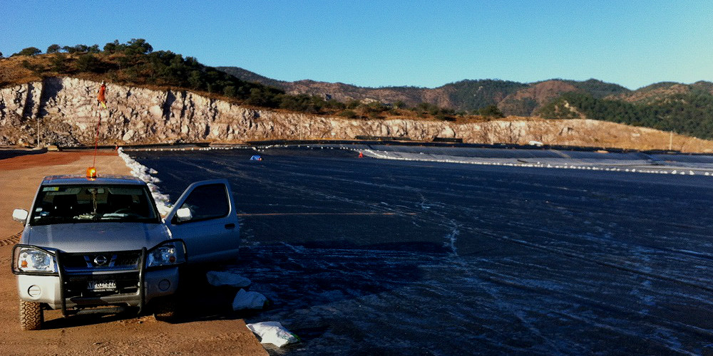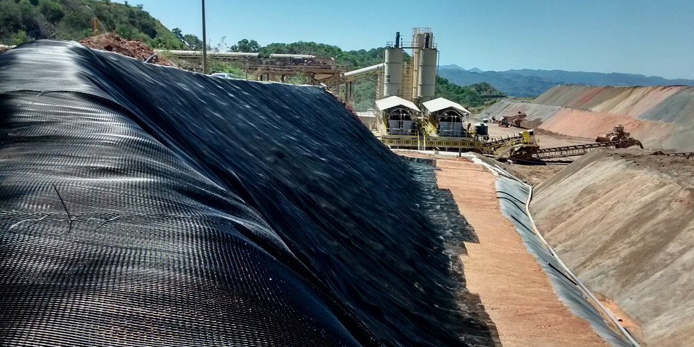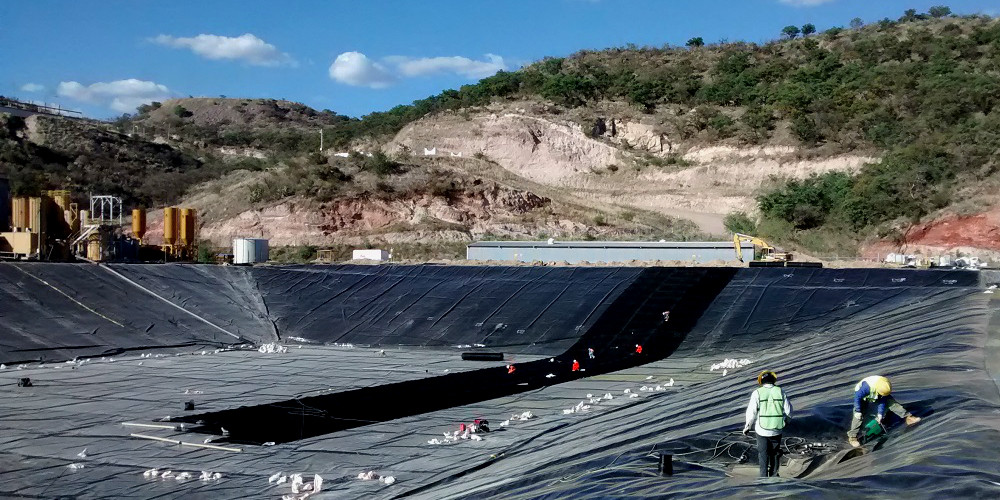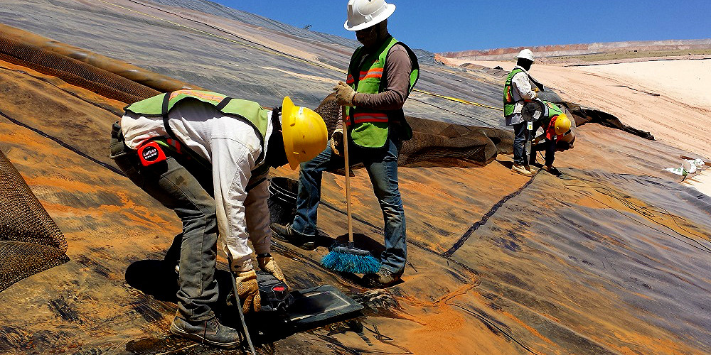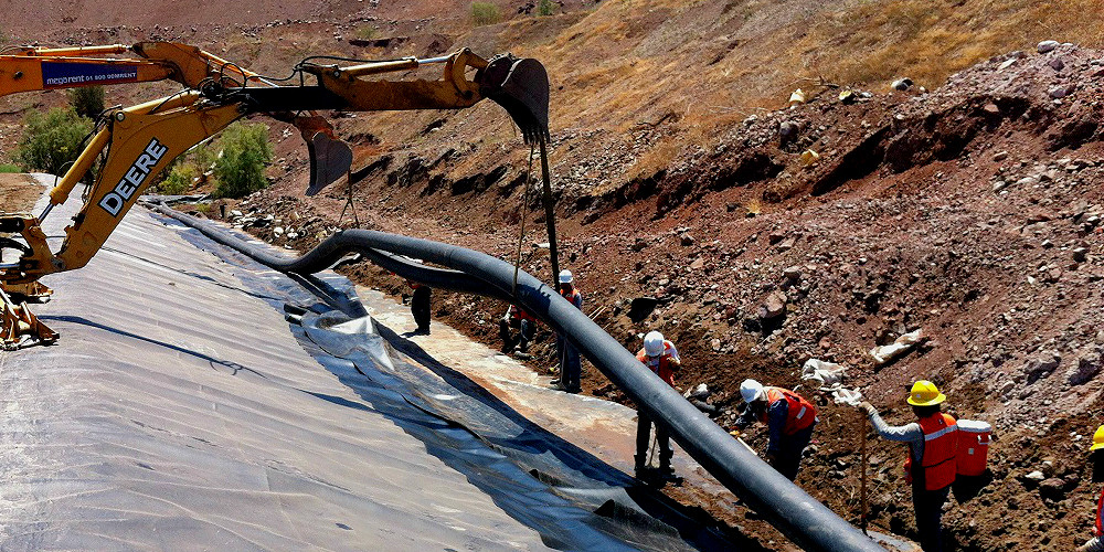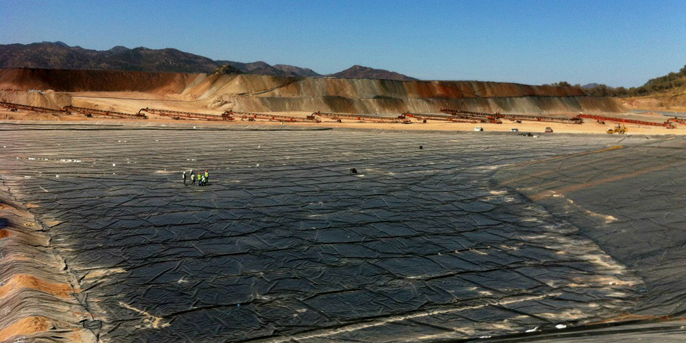 Minería. Patios de lixiviación, instalación de geomembrana.